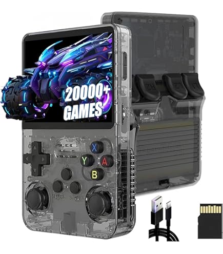 R36S Retro Handheld Plus de 15 000 jeux classiques préinstallés (années 70, 80, 90, 2000) sur carte 64 Go incluse.