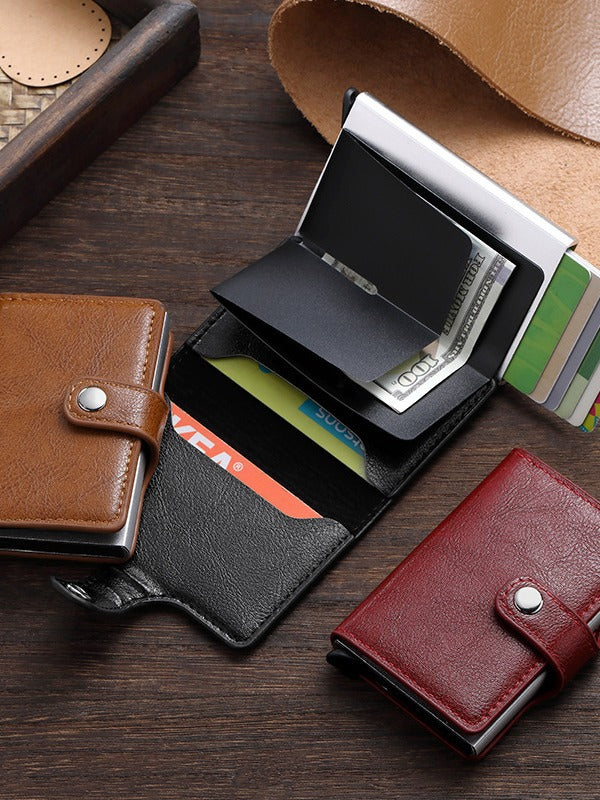 Un portefeuille moderne avec mécanisme pop-up : vos cartes sortent d’un simple clic. Compact, sécurisé et élégant, il est idéal pour un usage quotidien.
